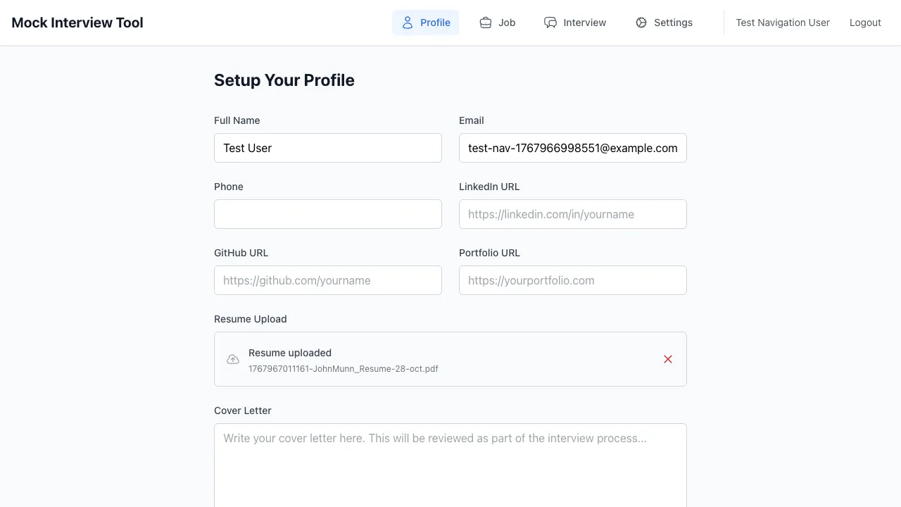 Rather than a toy demo, this workflow is exercised against a real system I use regularly: InterviewPrep, an AI-driven interview practice app.
